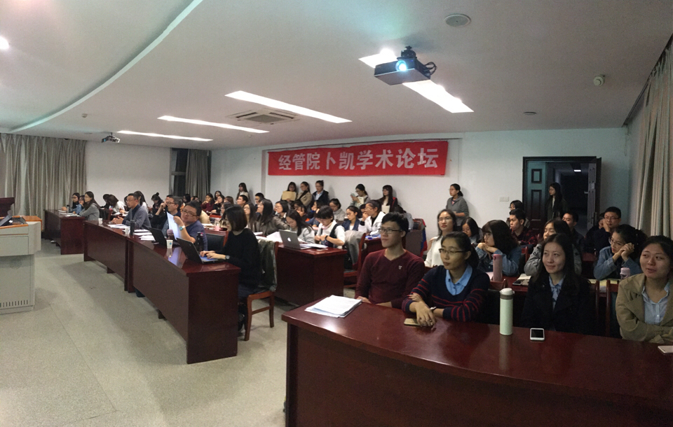2017年10月18日晚6点30分,经管院研会学术部举办的第八十五期卜凯论坛在逸夫楼5086成功举办,仲漫、王许沁、谭鑫、李美佳、方萍萍、顾天竹、毛慧、翟乾乾、吕沙做了精彩的汇报,何军、朱战国、田曦老师给予了详细的点评。