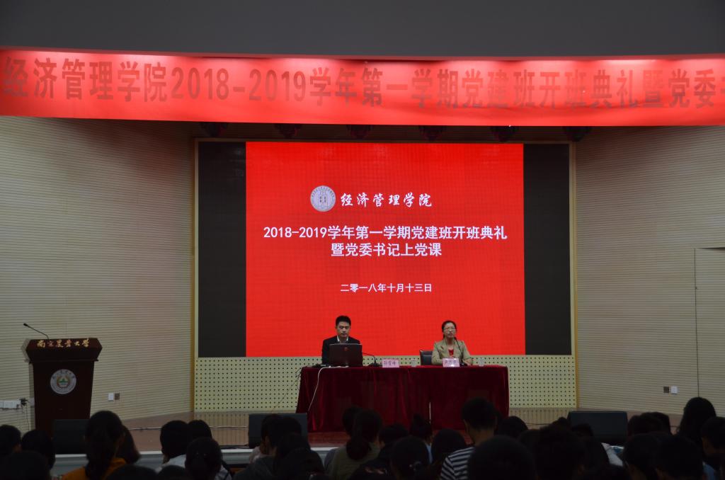 10月13日上午,英国正版365官方网站在大学生活动中心举办2018-2019学年第一学期党建班开班典礼暨党委书记上党课,院党委副书记(主持工作)孙雪峰、院党委副书记卢忠菊出席本次活动,研究生辅导员张杨,本科生辅导员李扬、郑琼婷,党务秘书师慧及全体学生党员、入党积极分子和初级党建班成员共计280余人参加。院党委副书记(主持工作)孙雪峰以“《共产党宣言》导论”为主题为全体同学上了新学期第一节党课。会议由卢忠菊主持。