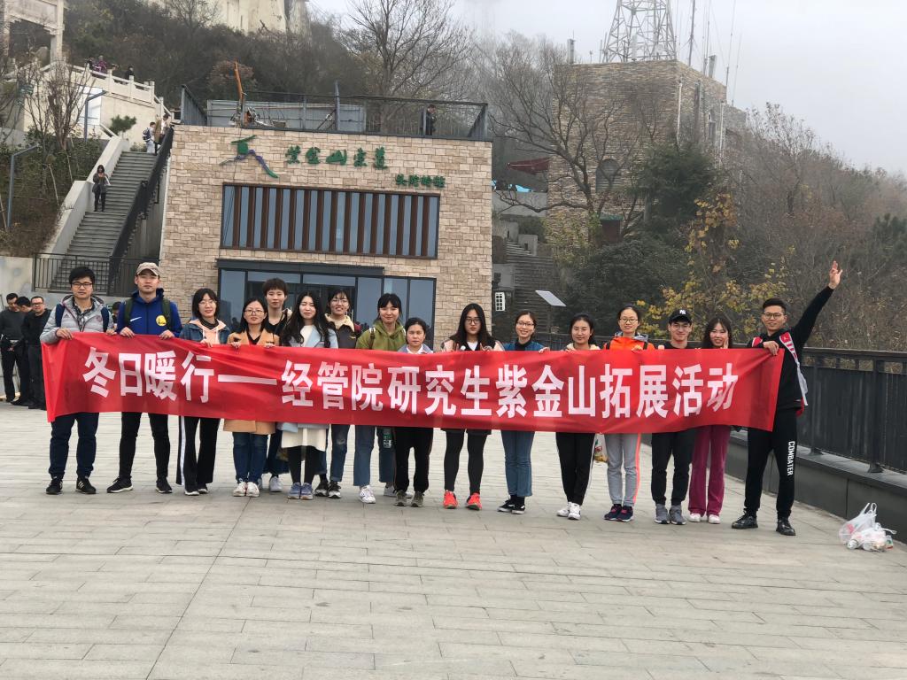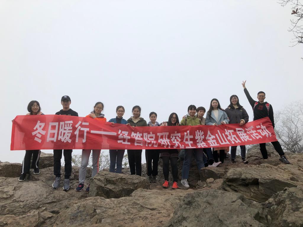 2018年12月1日星期六,经管院研会体育部在紫金山成功举办素质拓展活动。 此次素质拓展活动于上午八点半在英国正版365官方网站北门集合,此次活动为所有到场的同学准备了水果、矿泉水、零食。所有人到齐之后大家先乘坐地铁二号线至金马路,然后换乘至蒋王庙地铁站,出站之后就开始了我们的登山之旅。