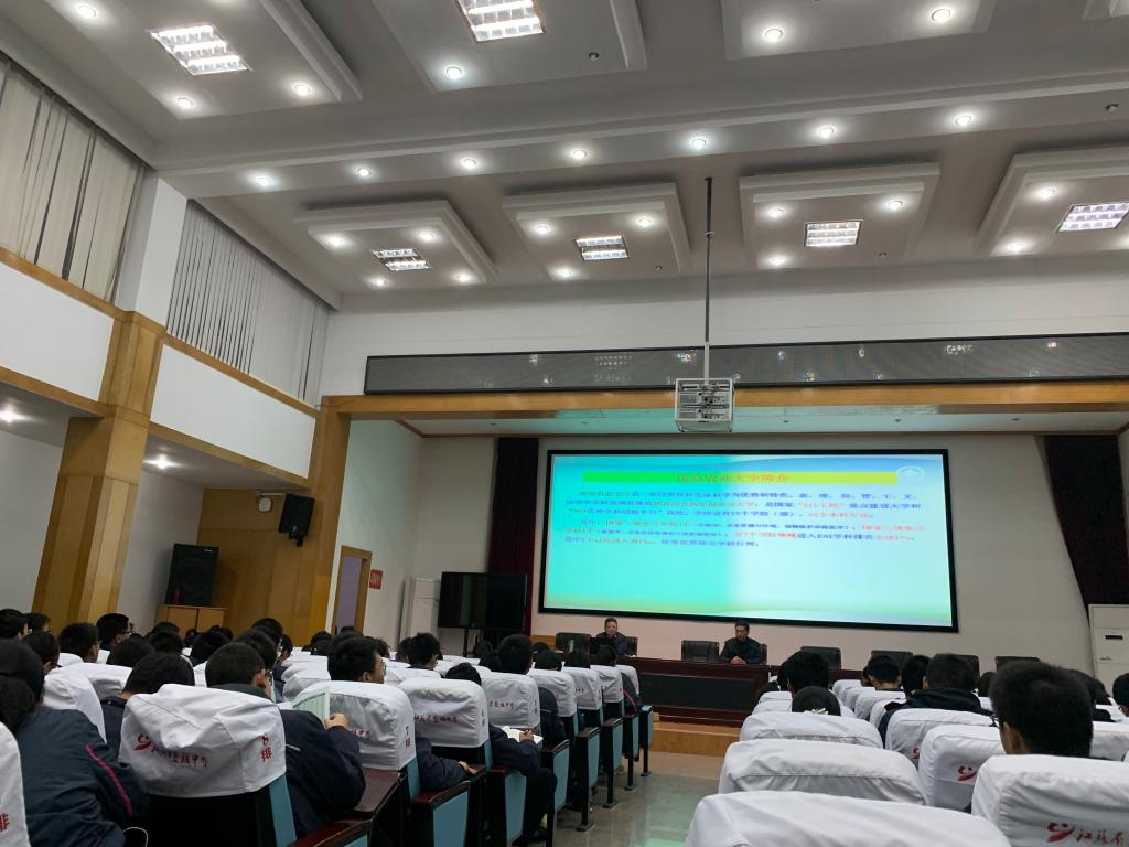2018年11月29日,英国365官网盐城招生宣传组赴盐城一中、盐城中学开展了“大学生科普讲座进校园”共建活动。英国正版365官方网站张秋林副教授、英国正版365官方网站辅导员李扬与两所中学的教务主任及高三年级班主任等进行了座谈交流。张秋林副教授应邀为六百余名中学生作了题为《大学&营销&人生》的科普讲座。
