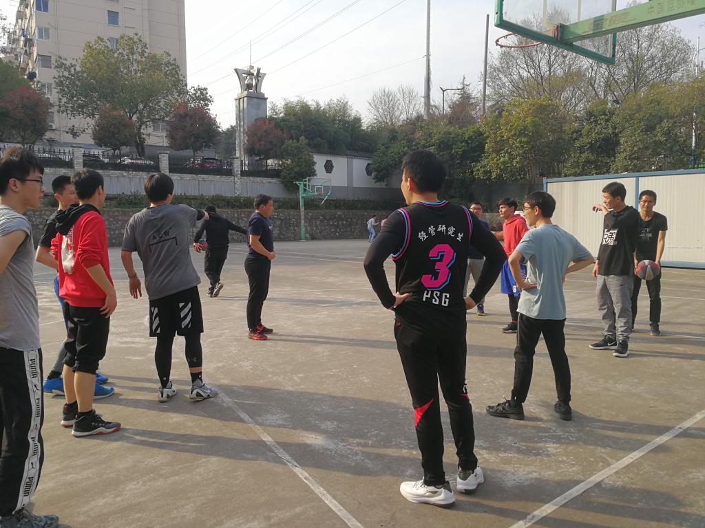 本次比赛在下午三点开始,刚开始分为新生队和老生队两支队伍,老生以博士生为主,他们经验丰富,球风犀利,将快攻与传球技巧发挥的淋漓尽致,很快将比分拉大,球场边的观众也看的啧啧称赞。为了让大家都参与到比赛中,我们两支队伍在比赛中采用轮番上场的办法,帮助大家找到比赛的感觉。在比赛过程中,场下休息的博士生学长和两位老师丝毫没有休息的架势,他在坐在场边告诉场上的队员如何跑位,跟他们细心的讲授战术,新生们则侧耳聆听,受益匪浅。