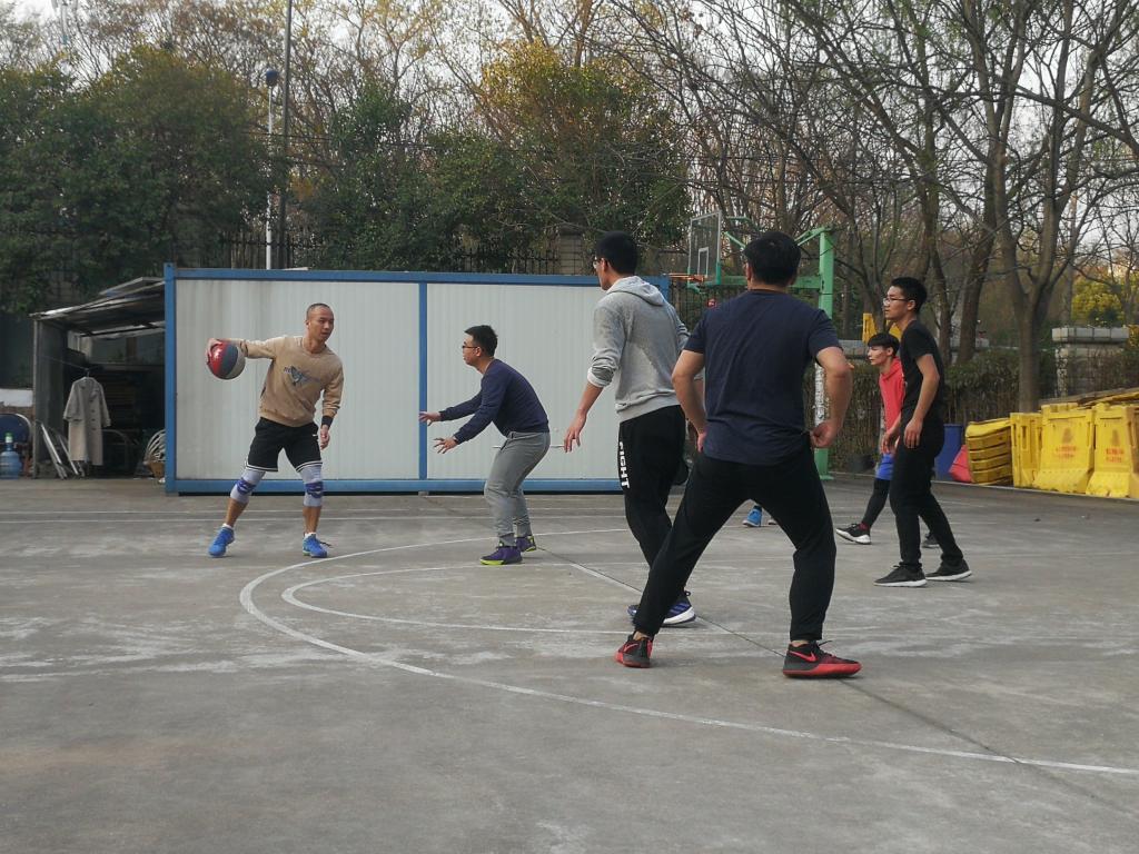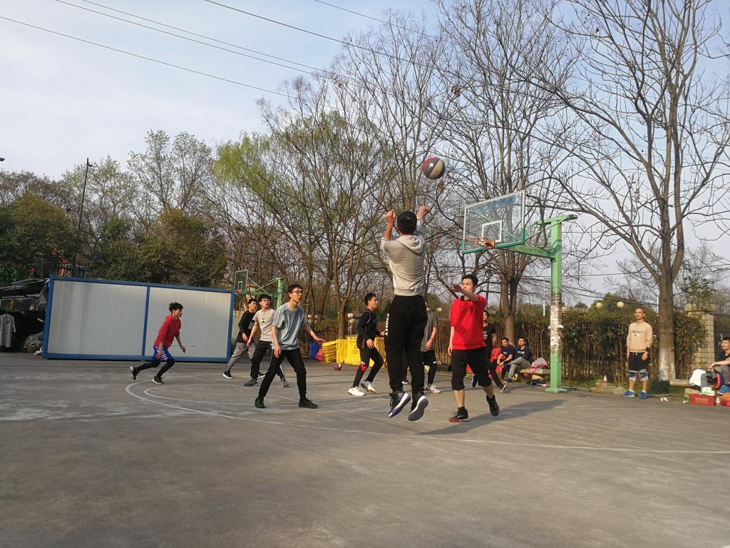 随着比赛的进行,两支队伍的成员组成也发生了变化,两支队伍分别由周力老师和伽红凯老师作为队长挑选自己队伍的成员,进行两轮的对抗。这次分组之后的第一轮比赛中,周力老师队伍在比赛的前半段把比分遥遥领先,根本不给伽红凯老师队得分的机会,但是随着比赛进行一半,伽红凯老师队的三分火力突然爆发,连续突破和连中几记三分将比分缩进,最后神奇的逆转取胜。