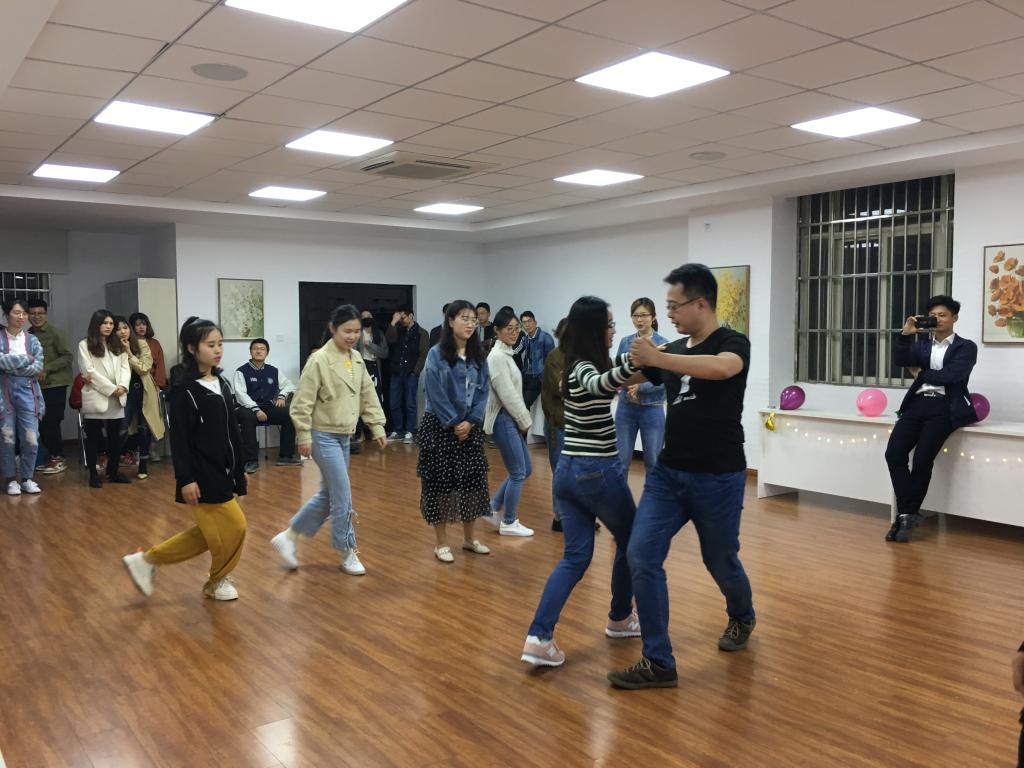 应同学们要求,为了更好地参与到舞会中来,徐老师又展示了两种群体舞蹈——兔子舞和恰恰。在大家积极的参与下,舞会的气氛被推向了又一个高潮。舞会的最后进行了三轮抽奖,共有5位幸运的同学抱走了奖品。舞会结束后全体同学和徐老师进行了合影留念。