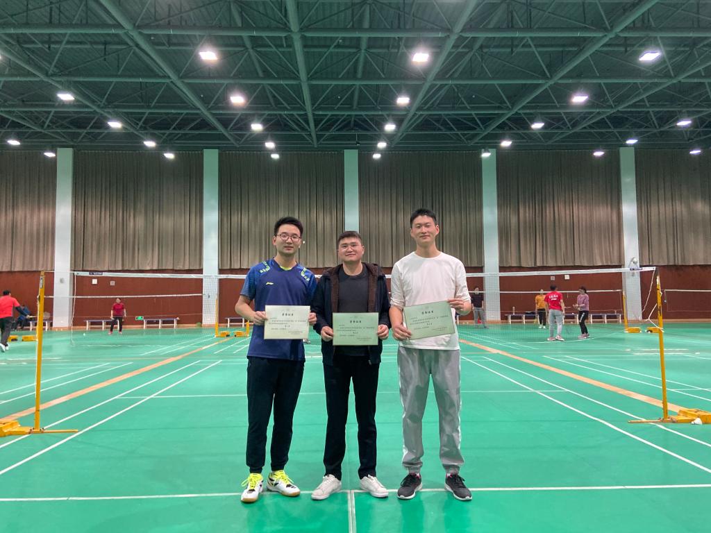 经过紧张激烈的角逐,男单、混双前三名纷纷出炉。选手宋成城、陈喜、江艳军分列男单比赛的前三甲,选手组合宋成城/薛岩彤、薛文祺/张婷婷、江艳军/康茜分列混双比赛前三甲。赛后体育部部长给上述获奖选手颁发了证书及奖品,最后大家一起进行了合影留念。