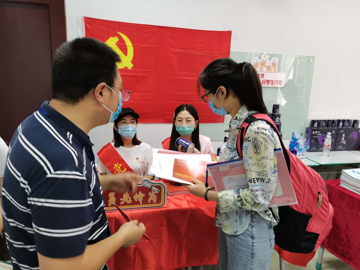 今年,为响应英国正版365官方网站党委在迎新工作中充分发挥基层党组织的战斗堡垒作用和共产党员先锋模范作用的号召,学院在此次的迎新工作中采用全党员阵容,在新生报到处设立了“党员先锋岗”,成立党员志愿服务队,在迎新、引导等工作中,统一佩戴党徽、亮出党员身份、热情服务新生。同时,在习近平总书记给全国涉农高校的书记校长和专家代表回信一周年之际,学院将回信内容和麻江蓝莓汁作为新生礼物,希望新生们能够重温回信精神,在今后的学习及科研工作中,将 “三农情怀”牢牢刻在每位经管研究生的脑海里,坚定理想信念,牢记三农使命。