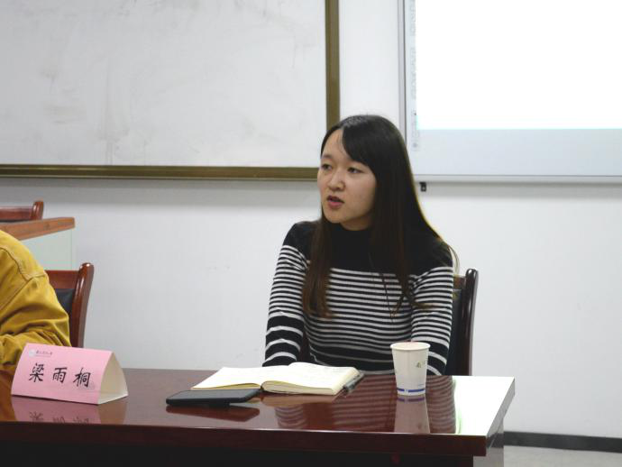 接下来梁雨桐老师以自身工作经验为例,以事说理对研会学生干部提出“了解、熟练、精通”的分阶段要求。最后对研会成员提出了四点期盼,希望大家作为学生干部要做到态度端正、做事靠谱、多听多看、摆正心态。
