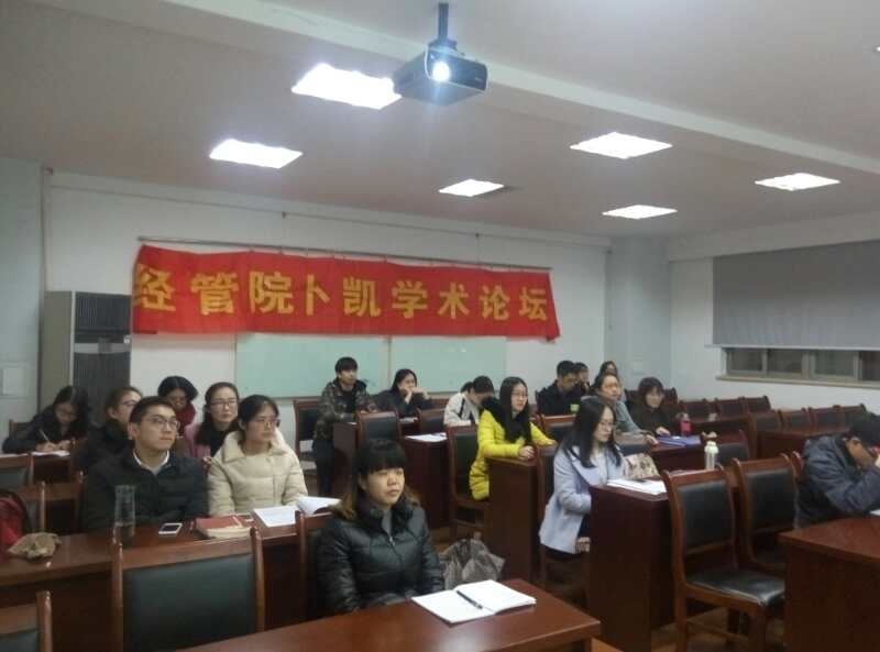 2016年11月23日晚7点,经管院研会学术部举办的第七十九期卜凯论坛在逸夫楼5086成功举办,朱灵君、刘鑫、谭鑫做了精彩的汇报,田旭、胡家香老师给予了详细的点评。